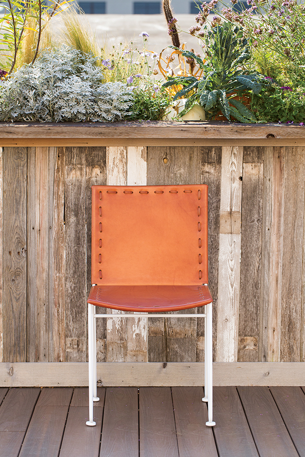 Garza Marfa saddle leather dining chair from Sara Kate Studios: A fresh take on a traditional dining chair – saddle leather and steel rod base. Handmade in Marfa, Texas, and featured in the New York Times.