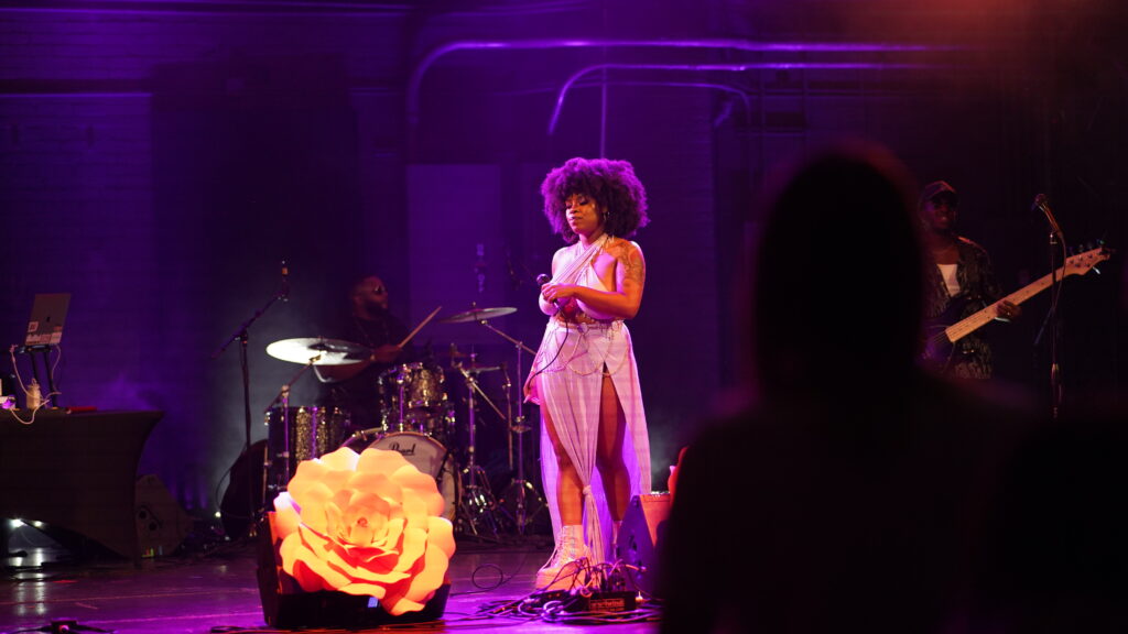 Moné also keeps that authenticity by creating her own otherworldly visuals. She directed the hypnotic, moody music video for “Late At Night,” and she’s staged her own idea of a Saturnian landscape for her live shows, including giant pink roses she built from sturdy construction paper to honor her grandmother.