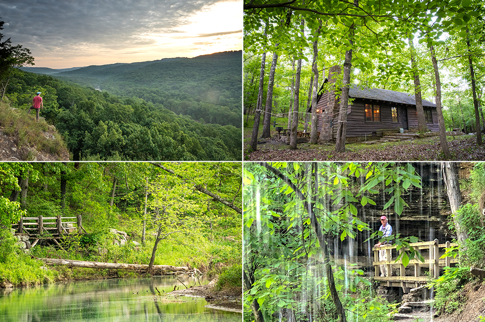 One of Arkansas’ many Civilian Conservation Corps projects, the park was built in the 1930s and is one of the state’s most treasured. Folks are drawn to it not only to enjoy the tranquility of Lee Creek and Devil Lake, but also because of the selection of hiking and mountain biking trails throughout its hills. For the novice, there are three walks around the lake and through the park’s beautiful forests. More ambitious visitors will find six moderate hikes. Yellow Rock Trail takes hikers up 300 feet in elevation, where there is a grand lookout over the entire park. The Devil’s Den self-guided Recreation Trail has perhaps the most to offer: Spanning a mere mile and a half, it includes grand vistas, lakeside trails and birdwatching opportunities as you hike above the canopy. It ends in climactic fashion with two stunning waterfalls located side by side – one you cross by way of a bridge and another you walk underneath.