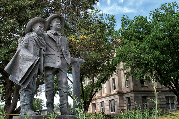 Their bronze figures oversee the town of Frederick’s annual Abernathy Day celebration, held the first Saturday in June. Although instilled with cowboy swagger, the likeness of 9-year-old Bud and 5-year-old Temple appear to be even smaller than their ages would suggest.