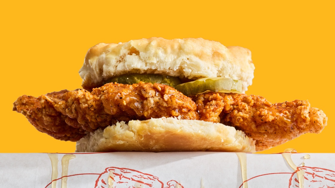 • Nashville Hot Chicken Biscuit – A sweet and spicy combination of hand-breaded Nashville hot fried chicken, topped with dill pickles and drizzled with honey