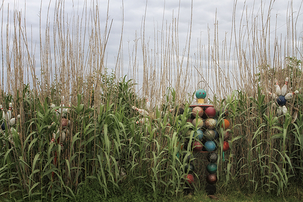 All told, Barbee has collected more than 2,800 bowling balls – weighting nearly 20 tons – to create Nowata County’s only folk-art sculpture garden.
