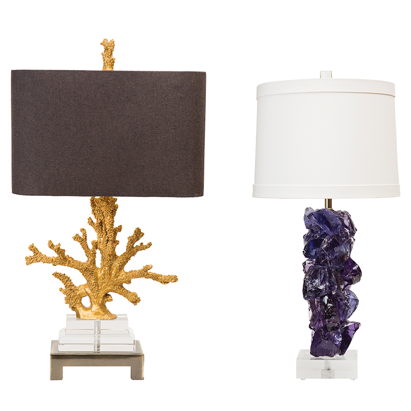 (left) Gold coral lamp, $298 from Cayman’s in Norman // (right) Amethyst lamp, $1,275 from Cayman’s in Norman