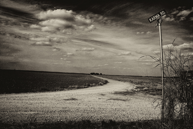 “There’s no Karma here. Just a road. Go north about a mile, and it’s the next dirt road on the right.”