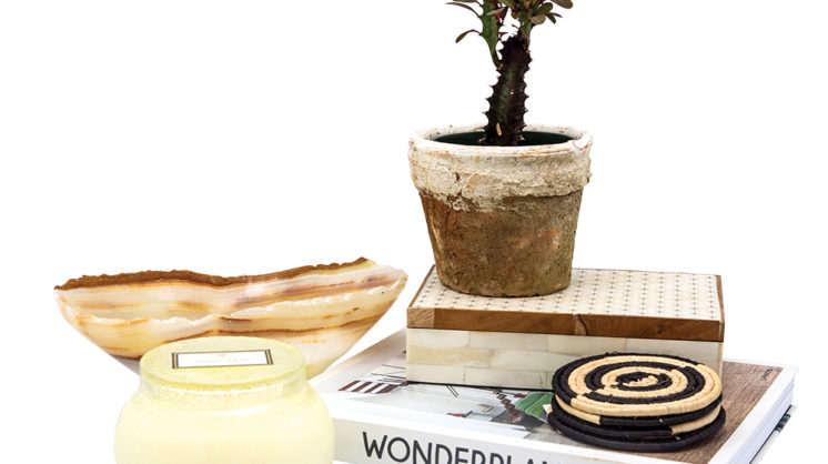 One ever-popular and, most would agree, essential piece of furniture for the living room is the coffee table – but while the choice to include one might be obvious, the next steps sometimes aren’t. Selecting what to place on top of that lovely coffee table – books, candles, trays, picture frames, knickknacks – can be more involved, and more rewarding, than picking out the table itself. Here are a few pairings of things that might jump-start your arrangement. One hint: don’t be afraid to clear it off and start over. The top of your coffee table is one of the easiest places to reset the mood of a room.