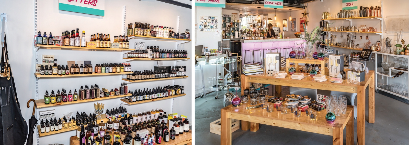 As for the store, it’s stocked with professional-bartender-quality tools and the city’s best selection of bitters, including local options from Winship. McLish carries educational books, quality glassware – so you won’t need to steal from your local bar – bar carts, aprons and a wide range of bartending necessities. She can guide you through the whole process, and if you’re looking for a fun (and educational) night with friends, you can book private parties or rent out the whole space.