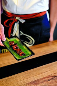 The chicken heart skewer is a traditional yakitori dish, and Chef Jeff Chanchaleune’s is as good an introduction as you’ll find. To minimize the somewhat iron-y taste of heart, he uses a sweet-savory house sauce, a misting of sake and a blend of sea salt and house spices.