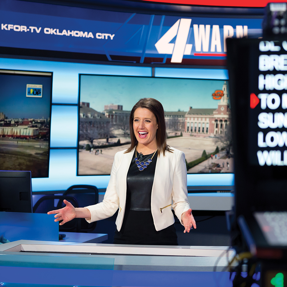 Emily Sutton is the only female meteorologist in Oklahoma who has earned seals from the National Weather Association and the American Meteorological Society. She has been in Oklahoma for more than eight years now, and her severe-weather welcome was the Christmas Eve blizzard of 2009. “If you are in weather, this is the place,” she says, over a cup of coffee and an enormous cinnamon roll at a café near her Oklahoma City home. She is quick to point out that she is not the first female meteorologist in the market – that honor goes to KFOR’s Sarah Libby, now delivering the weather on a part-time basis while pursuing an engineering degree.